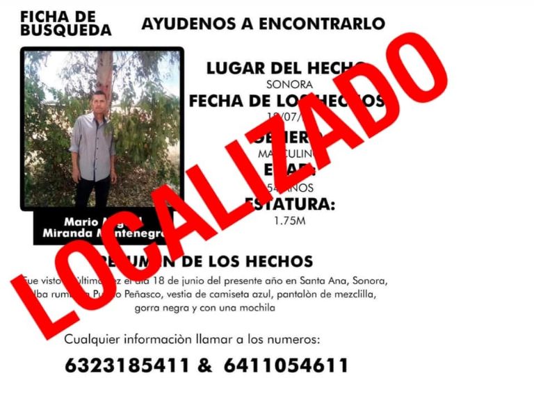 Santa Ana, Sonora.- Hace más de un mes, la familia de Mario Miguel Miranda Montenegro reportó su repentina desaparición cuando viajaba en una carretera de Sonora; pero por fortuna se reveló que ya fue localizado con vida.