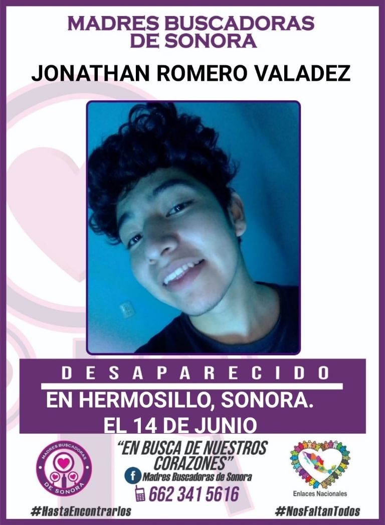 Hermosillo, Sonora.- En días recientes el colectivo Madres Buscadoras de Sonora reportó la desafortunada desaparición del joven Jonathan Romero Valadez, de quien no se sabe nada desde hace varias semanas en la ciudad de Hermosillo, Sonora.