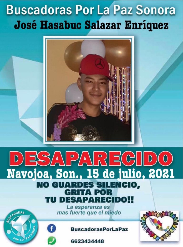 Buscamos de su ayuda para localizar a mi sobrino José Hasabuc Salazar Enriquez. Cualquier información dada, por mínima que sea, se tratará con discreción", se lee en Facebook.
