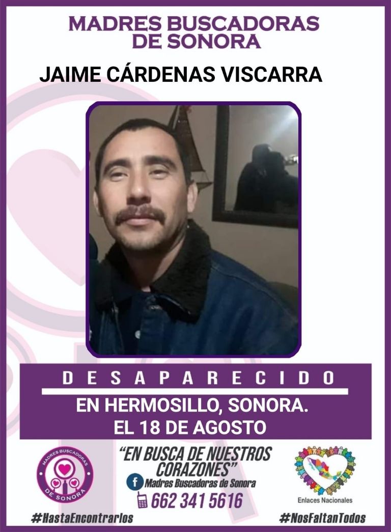 Hermosillo, Sonora.- Momentos de angustia y preocupación son los que viven los familiares y amigos de Jaime Cárdenas Vizcarra, quien desapareció sin dejar rastro hace casi 2 semanas en su natal Hermosillo, Sonora