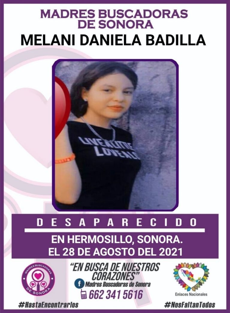 Hermosillo, Sonora.- Este martes 31 de agosto se reportó la lamentable desaparición de la joven Melani Daniela Badilla, de quien nada se sabe desde hace varios días en Hermosillo, Sonora y se pide ayuda para traerla de vuelta a casa.