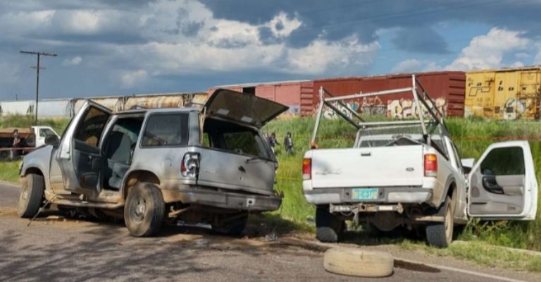 Chihuahua.- Una persona falleció y tres más sufrieron graves lesiones derivadas de un accidente vial en la carretera Anáhuac-Riva Palacio, en Chihuahua, lo que provocó una intensa movilización policial y de paramédicos.