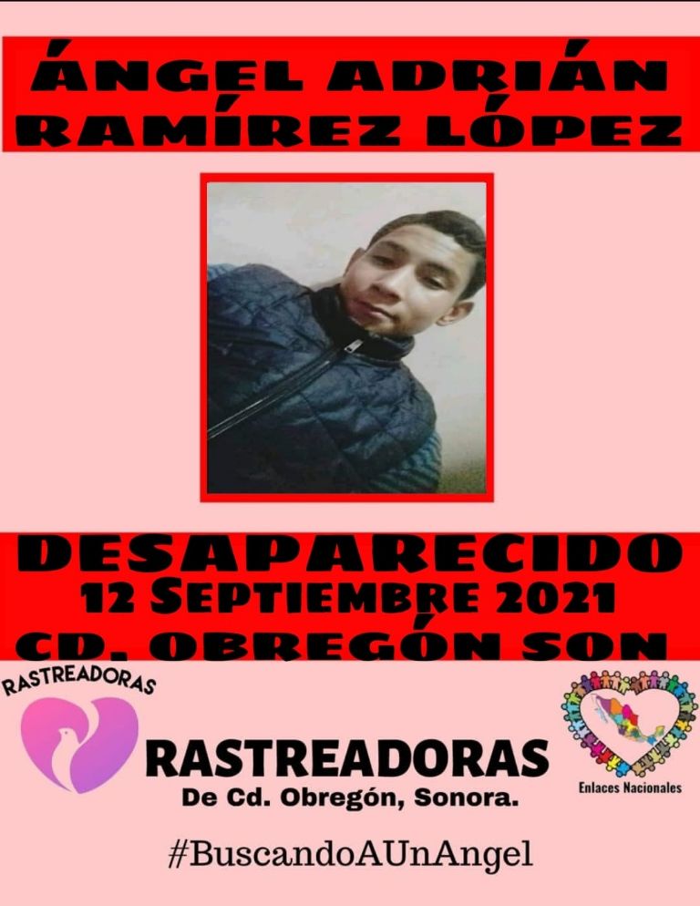 Ciudad Obregón, Sonora.- El colectivo Rastreadoras de Ciudad Obregón pide el apoyo de la ciudadanía para localizar a Ángel Adrián Ramírez López, joven que desapareció el pasado fin de semana en su natal Ciudad Obregón, Sonora.