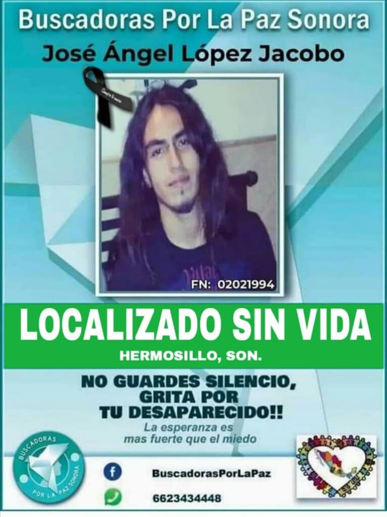 Hermosillo, Sonora.- La mañana de este jueves 16 de septiembre se confirmó que el cuerpo de José Ángel López Jacobo fue localizado en su natal Hermosillo, el cual se encontraba en calidad de desaparecido desde hace poco más de 2 años.