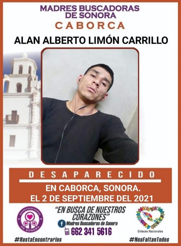 Caborca, Sonora.- Este jueves 16 de septiembre, el colectivo Madres Buscadoras de Sonora informó sobre la lamentable desaparición de Alan Alberto Limón Carrillo, de quien no se sabe nada desde hace poco más de 2 semanas en Caborca, Sonora.