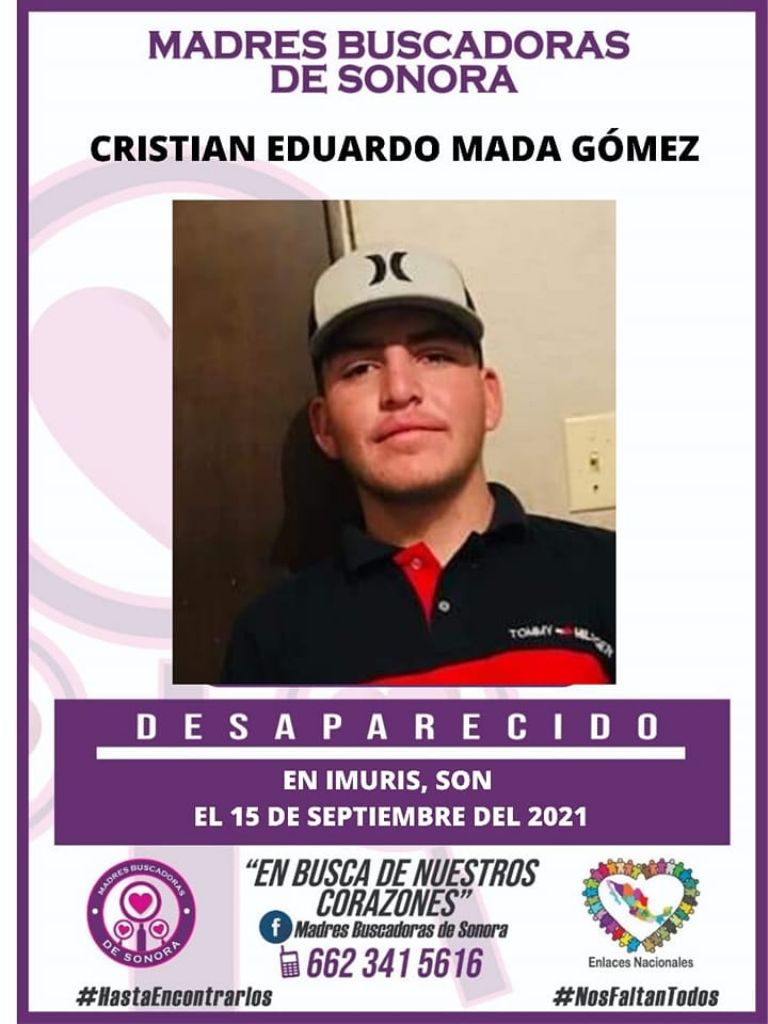 A través de redes sociales, el colectivo Madres Buscadoras de Sonora publicó la ficha de búsqueda del extraviado y señaló que la última vez que se le vio fue el miércoles 15 de septiembre de 2021, cuando salió de casa por la tarde y ya no regresó.