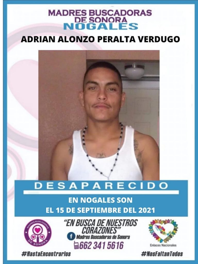 Nogales, Sonora.- Todo un infierno es lo que vive una familia de Nogales, Sonora al no saber nada sobre el paradero de su pariente, Adrián Alonso Peralta Verdugo, quien se encuentra en calidad de desaparecido desde hace poco más de una semana.