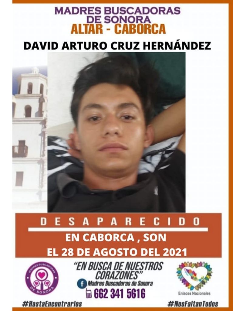 Nogales, Sonora.- El colectivo Madres Buscadoras de Sonora reportó la desaparición del joven David Arturo Cruz Hernández y solicitó el apoyo de la ciudadanía para dar con su paradero ya que su familia se encuentra muy preocupada por él.