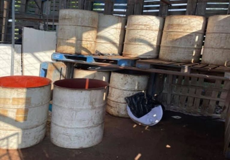 Durante la investigaciones, aseguraron en total 3 mil 360 litros de diésel, 33 contenedores con capacidad para 200 litros, dos contenedores con capacidad para mil litros, 186 bidones con capacidad para 20 litros, cinco motobombas, diversos pedazos de manguera, un vehículo tipo pick up y un vehículo tipo camión de volteo.