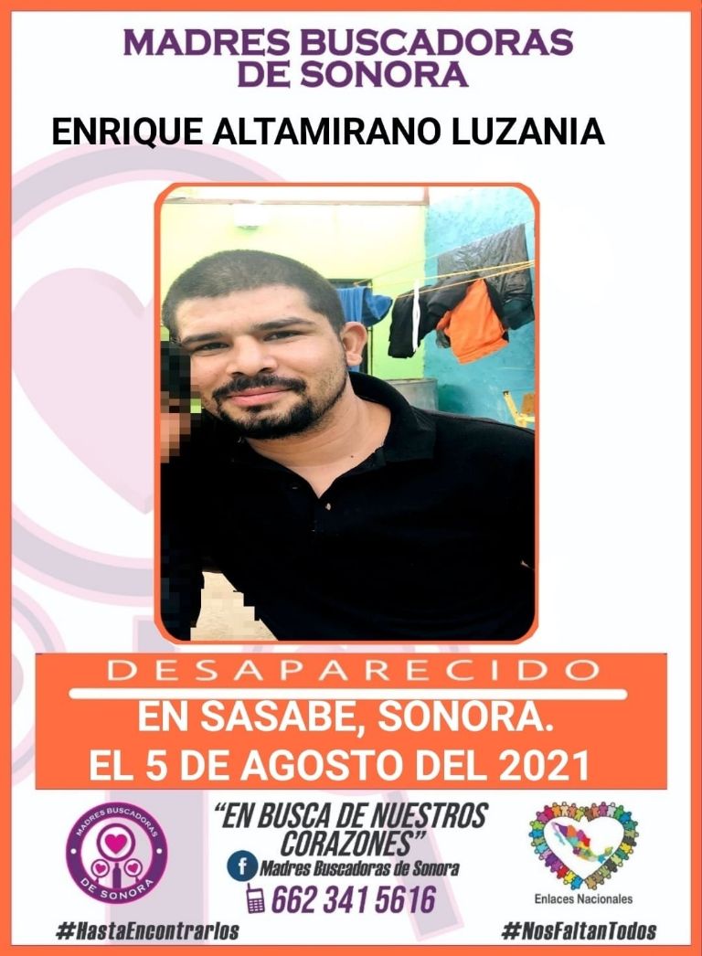 Sábabe, Sonora.- Momentos de angustia vive una familia que pide el apoyo de la comunidad para dar con el paradero de Enrique Altamirano Luzania, quien desapareció hace más de un mes en la comunidad fronteriza de Sásabe, Sonora.