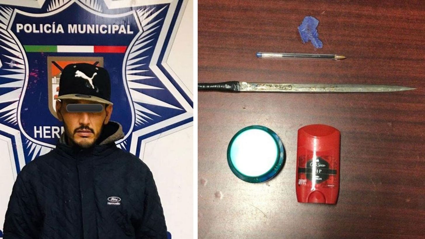 Hermosillo, Sonora.- Víctor Alfredo, de 31 años, fue arrestado este martes por la mañana por el delito de robo a comercio abierto al público, situado en la colonia Villas del Marqués.