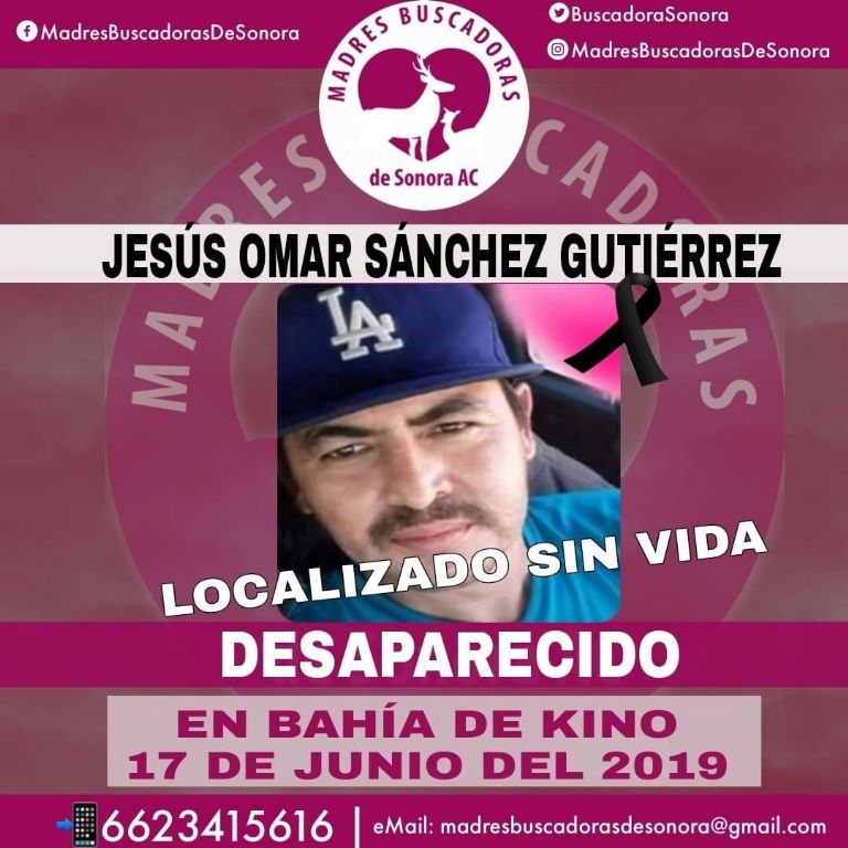A través de redes sociales, el grupo de rastreadoras detalló que se trata de Jesús Omar Sánchez Gutiérrez, quien se encontraba extraviado desde el día 17 de junio de 2019, en la mencionada comunidad del municipio de Hermosillo.
