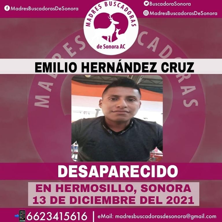 Por todo lo anterior, Madres Buscadoras de Sonora pidió a las personas difundir la fotografía de Emilio Hernández y de esa manera ayudar en su pronta localización.