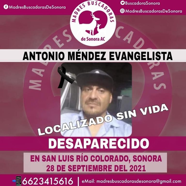 Según informó el colectivo Madres Buscadoras de Sonora a través de redes sociales, el cuerpo de Antonio fue localizado sin vida este fin de semana, sin embargo, no se han brindado mayores detalles sobre dónde y cómo se hizo el hallazgo.