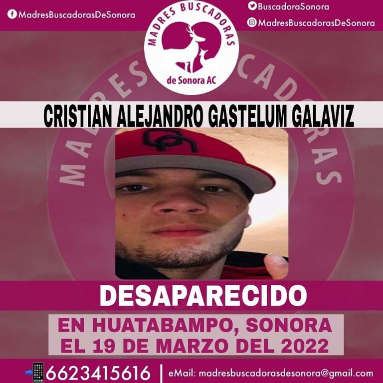 Por todo lo anterior, el colectivo Madres Buscadoras de Sonora difundió la ficha de búsqueda de Cristian Alejandro y puso a disposición su número 662 341 5616 para que la gente aporte cualquier información que ayude a dar con él.