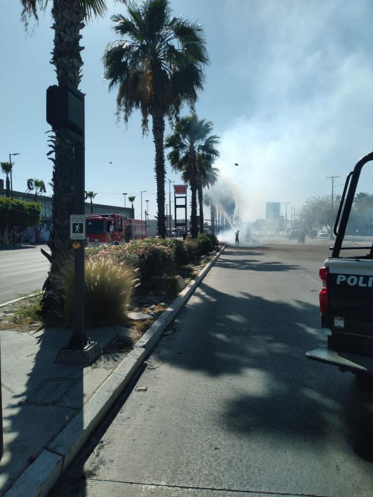 Hermosillo, Sonora.- Alrededor de las 15:40 horas del pasado sábado 26 de marzo, personal del Departamento de Bomberos sofocó el fuego en varias palmeras de los bulevares Kino y Gómez Farias en Hermosillo.