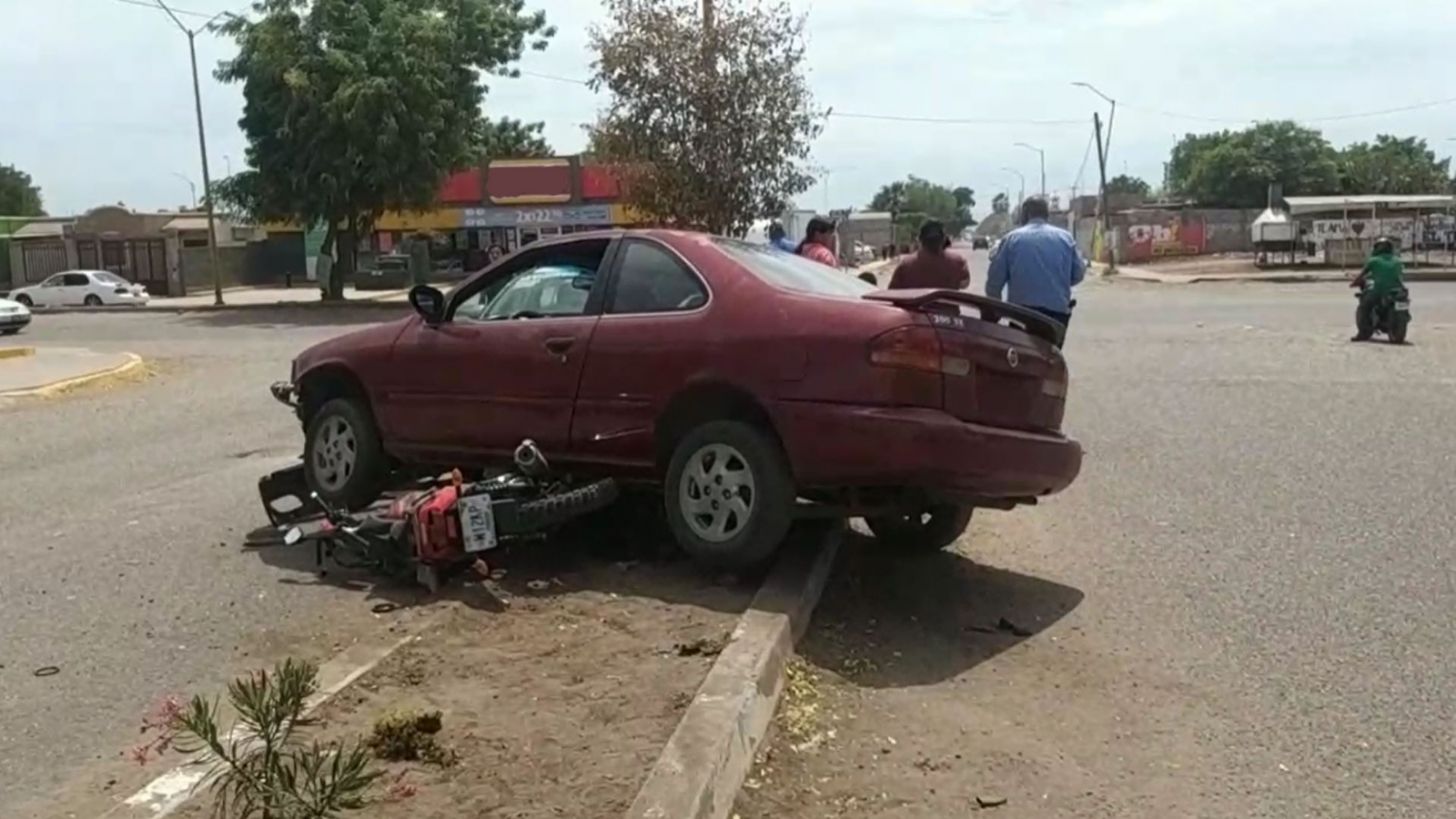 Ciudad Obregón, Sonora.- La tarde de este lunes 28 de marzo, al sur de Ciudad Obregón, se registró una aparatoso accidente el cual dejó como saldo una persona lesionada, luego de que un automóvil embistiera una motocicleta.