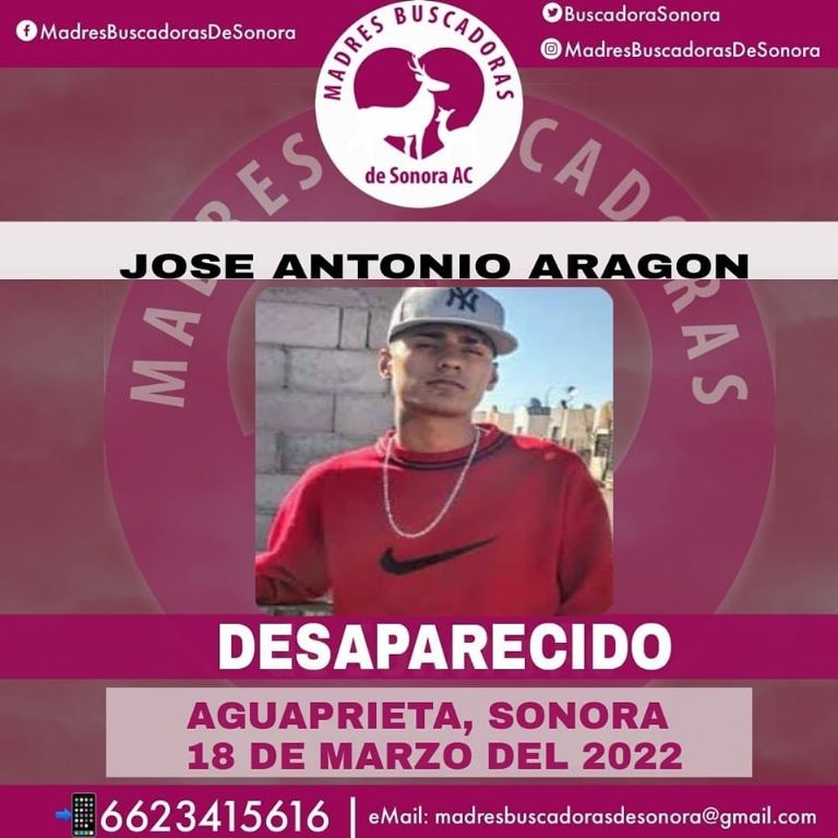 Agua Prieta, Sonora.- El colectivo Madres Buscadoras de Sonora reveló el fin de semana que una familia solicita ayuda para localizar a José Antonio Aragón, quien se encuentra en calidad de desaparecido en Agua Prieta, Sonora.