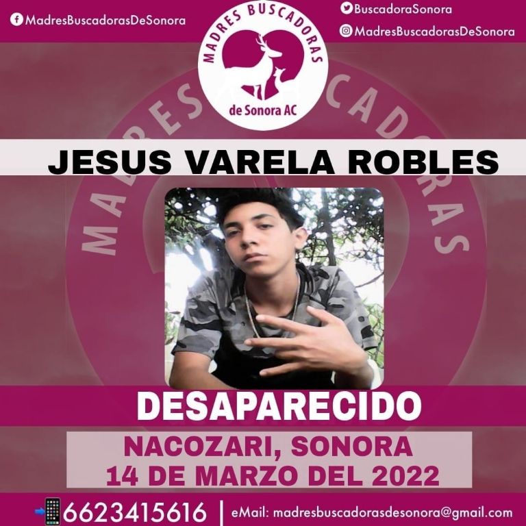 El colectivo Madres Buscadoras de Sonora publicó en su cuenta de Facebook la ficha de búsqueda del extraviado, donde indica que fue visto por última vez el lunes 14 de marzo de 2022, en la comunidad de Nacozari, Sonora.