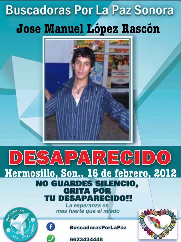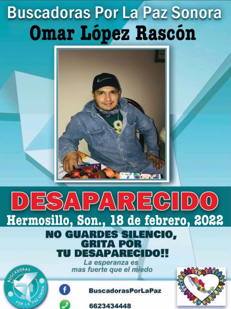 Hermosillo, Sonora.- El colectivo Buscadoras por la Paz solicita la ayuda de la población para dar con el paradero de Omar López Rascón, quien se encuentra en calidad de desaparecido desde el pasado mes de febrero en su natal Hermosillo, Sonora.