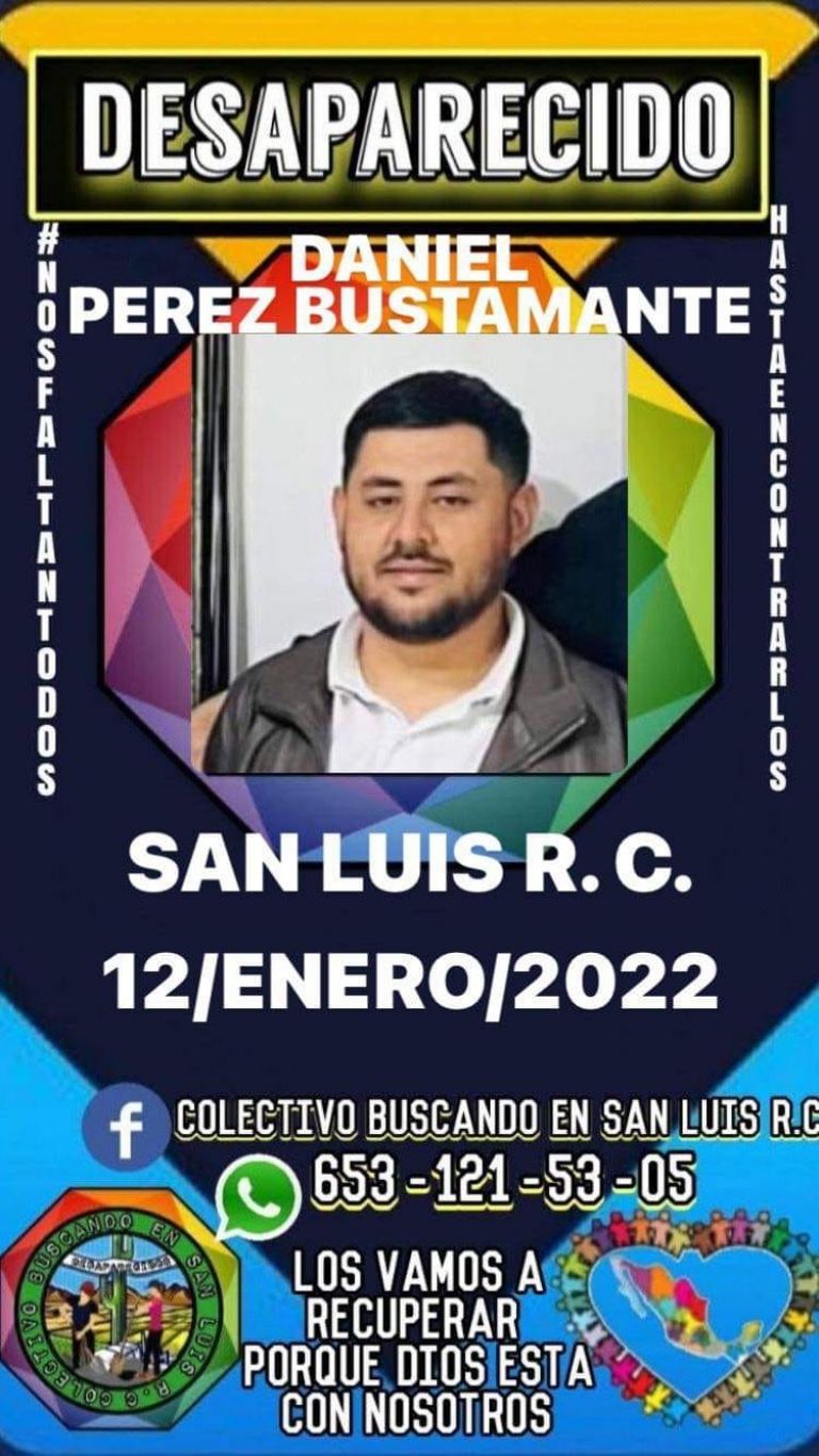 Por su parte, el colectivo Buscando en San Luis R. C. publicó la ficha de búsqueda de Pérez Bustamante y puso a disposición su número de teléfono 653 121 5305 para que la gente llame y aporte cualquier dato que ayude a encontrarlo.