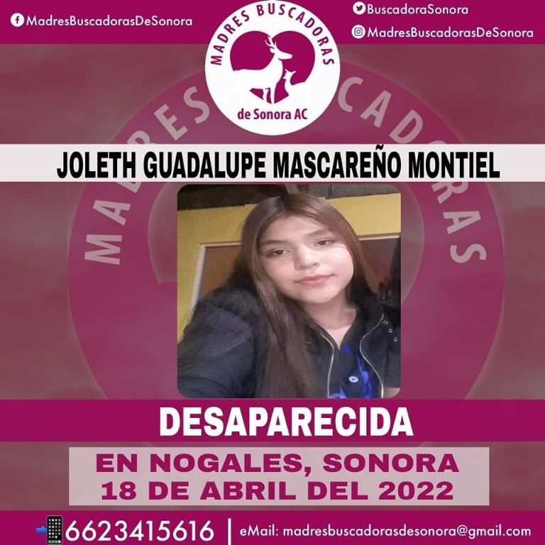 Nogales, Sonora.- Una angustiada familia pide la colaboración de la comunidad para localizar a Joleth Guadalupe Mascareño Montiel, joven de 17 años de edad se encuentra en calidad de desaparecida desde hace varios días en Nogales, Sonora.