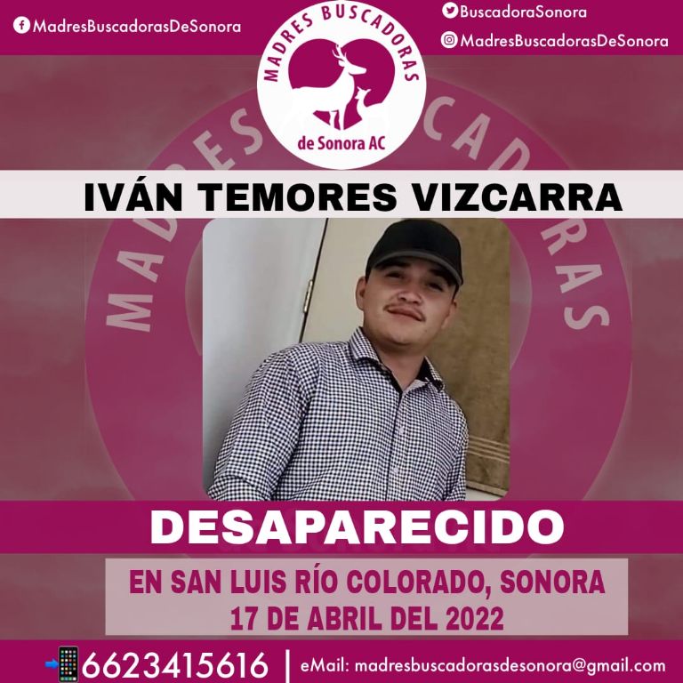 San Luis Río Colorado, Sonora.- Una desesperada familia hace un llamado a la población para apoyar en la búsqueda de Iván Arizahi Temores Vizcarra, quien se encuentra en calidad de desaparecido desde hace varios días en San Luis Río Colorado, Sonora.