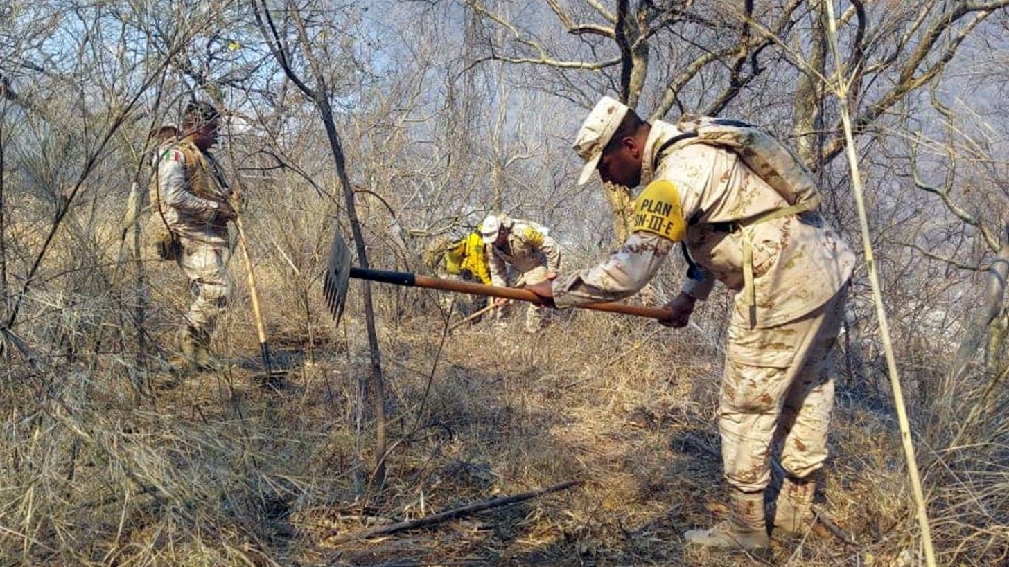 Álamos, Sonora.- La Secretaría de la Defensa Nacional (Sedena) aplicó el Plan DN-III-E debido a los incendios forestales que se han registrado en el cerro 'La Sierrita', en las inmediaciones de la ranchería La Aduana, municipio de Álamos, Sonora.