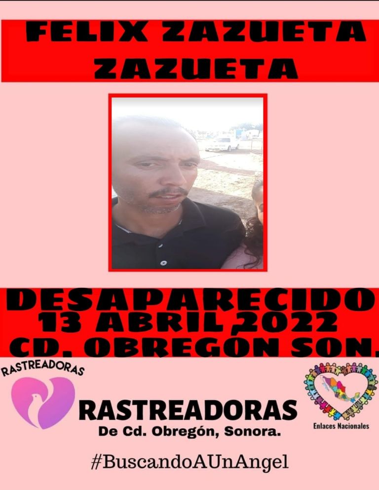 A través de redes sociales, el colectivo Rastreadoras de Ciudad Obregón indicó que última vez que se supo algo de él fue el pasado miércoles 13 de abril, cuando salió de su casa como de costumbre, sin embargo, ya no regresó.