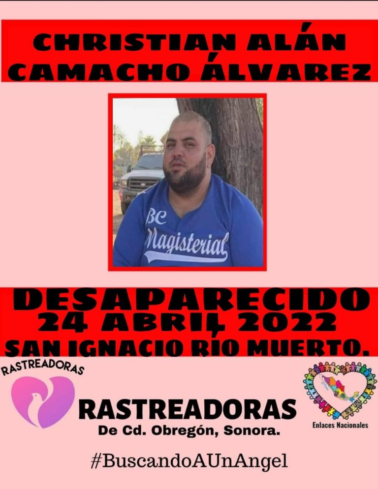 San Ignacio Río Muerto, Sonora.- Una angustiada familia solicita el apoyo de la comunidad para encontrar a Christian Alán Camacho Álvarez, quien se encuentra en calidad de desaparecido en la comunidad de San Ignacio Río Muerto, Sonora.