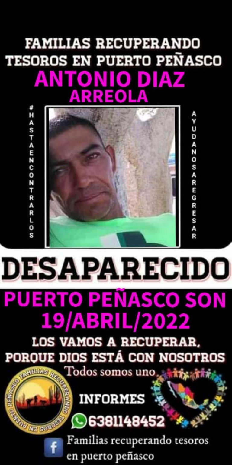 Por su parte, Familias Recuperando Tesoros en Puerto Peñasco difundió la ficha de búsqueda de Antonio y puso a disposición el número 638 114 8452 para que las personas aporten cualquier información que ayude a localizarlo lo antes posible.