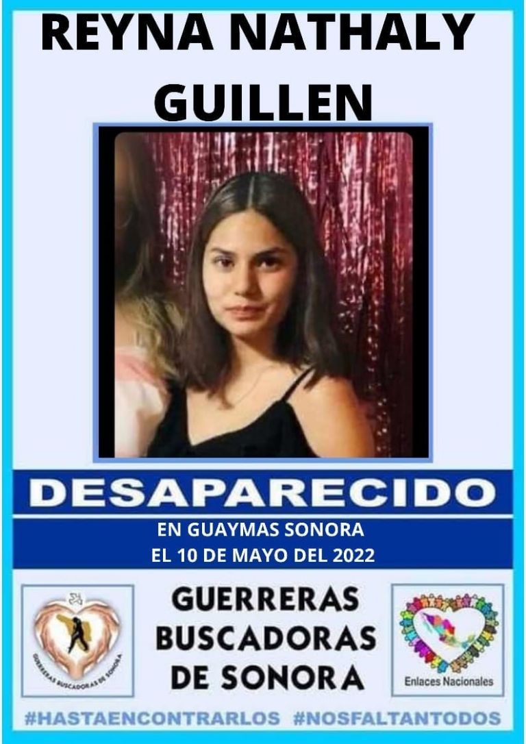Guaymas, Sonora.- Una angustiada familia solicita el apoyo de la población para tratar de dar con el paradero de Reyna Nathaly Guillén, de 19 años de edad, quien se encuentra desaparecida en Guaymas, Sonora.