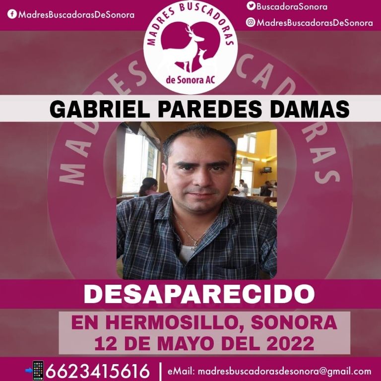 Hermosillo, Sonora.- Este fin de semana, el colectivo Madres Buscadoras de Sonora alertó sobre la lamentable desaparición de Gabriel Paredes Damas, hombre con residencia en Hermosillo, de quien nada se sabe desde hace varias días.
