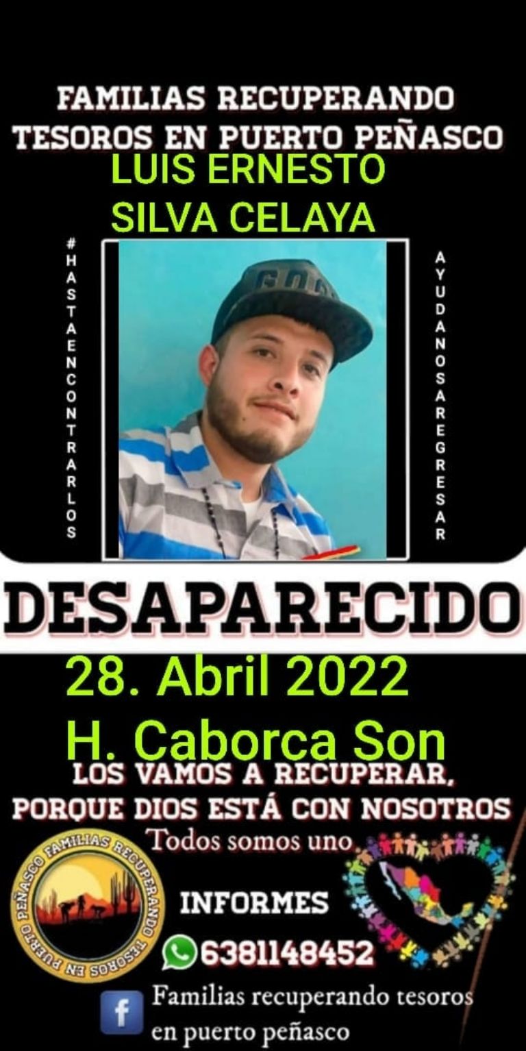 Por su parte, el colectivo Familias Recuperando Tesoros en Puerto Peñasco difundió en redes la ficha búsqueda de Luis Ernesto y puso a disposición el número de teléfono 638 114 8452 para que la gente se comunique y aporte cualquier información que ayude a dar con su ubicación.