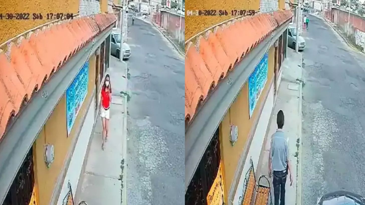 Vecinos del lugar escucharon el alboroto y empezaron a grabar al hombre, por lo que este se terminó yendo del lugar. En las cámaras quedó grabado cómo camina hasta la calle Plan de San Luis, donde se detiene a hablar con el conductor de una camioneta roja.