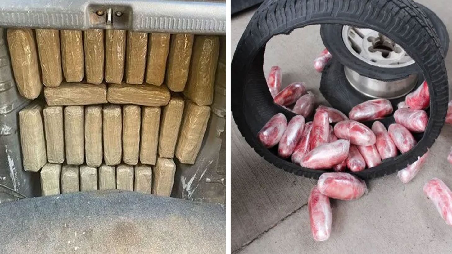 Aunque no se especificaron mayores detalles con respecto a los decomisos, en las imágenes compartidas por las autoridades fronterizas se aprecia que el narcótico fue hallado entre escondites creados en la carrocería de un vehículo, en el espacio para la llanta de refacción de otra unidad, además de otro relleno de un neumático.