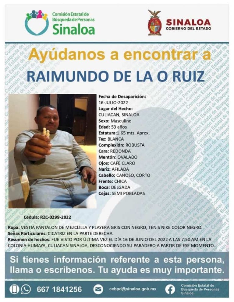 Hasta el momento se desconoce cómo fue que Raimundo llegó hasta tierras sonorenses, pero horas antes de su rescate, habitantes de la localidad reportaron que se encontraba deambulando por las calles del sector; tras contactarse hasta la ciudad de Culiacán, familiares de la persona viajaron hasta Ciudad Obregón, para reencontrarse con él sano y salvo. Cabe mencionar que hace dos días, la Comisión Estatal de Búsqueda de Personas en Sinaloa publicó la ficha con las características de Raimundo, para lograr dar con su paradero, pero fue desactivada al haber sido localizado.