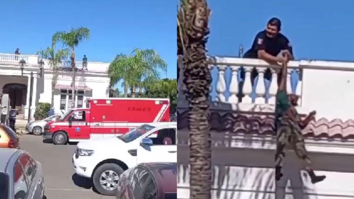 Navojoa, Sonora.- Un hombre de origen centroamericano, fue rescatado por personal de los bomberos y Seguridad Pública, pues el varón, que visiblemente parece que se encontraba en situación de calle, se intentó quitar la vida colgándose desde lo alto de una casa a pocos metros del Palacio Municipal de Navojoa, Sonora. Según el informe preliminar, el hecho ocurrió alrededor de las 11:30 horas.