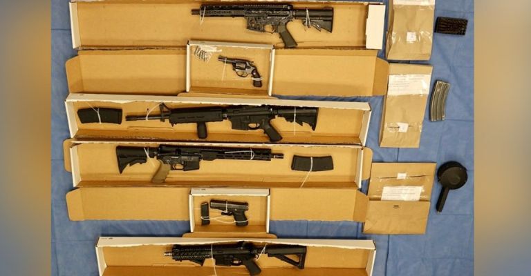 En la vivienda se localizaron además los siguientes objetos: cuatro armas largas AR 15, un arma corta tipo revólver, un arma corta Glock, un cargador para arma larga calibre .223, un cargador de tambor para arma corta Glock calibre 9 milímetros, 43 cartuchos completos calibre .223 y cuatro chalecos tácticos.