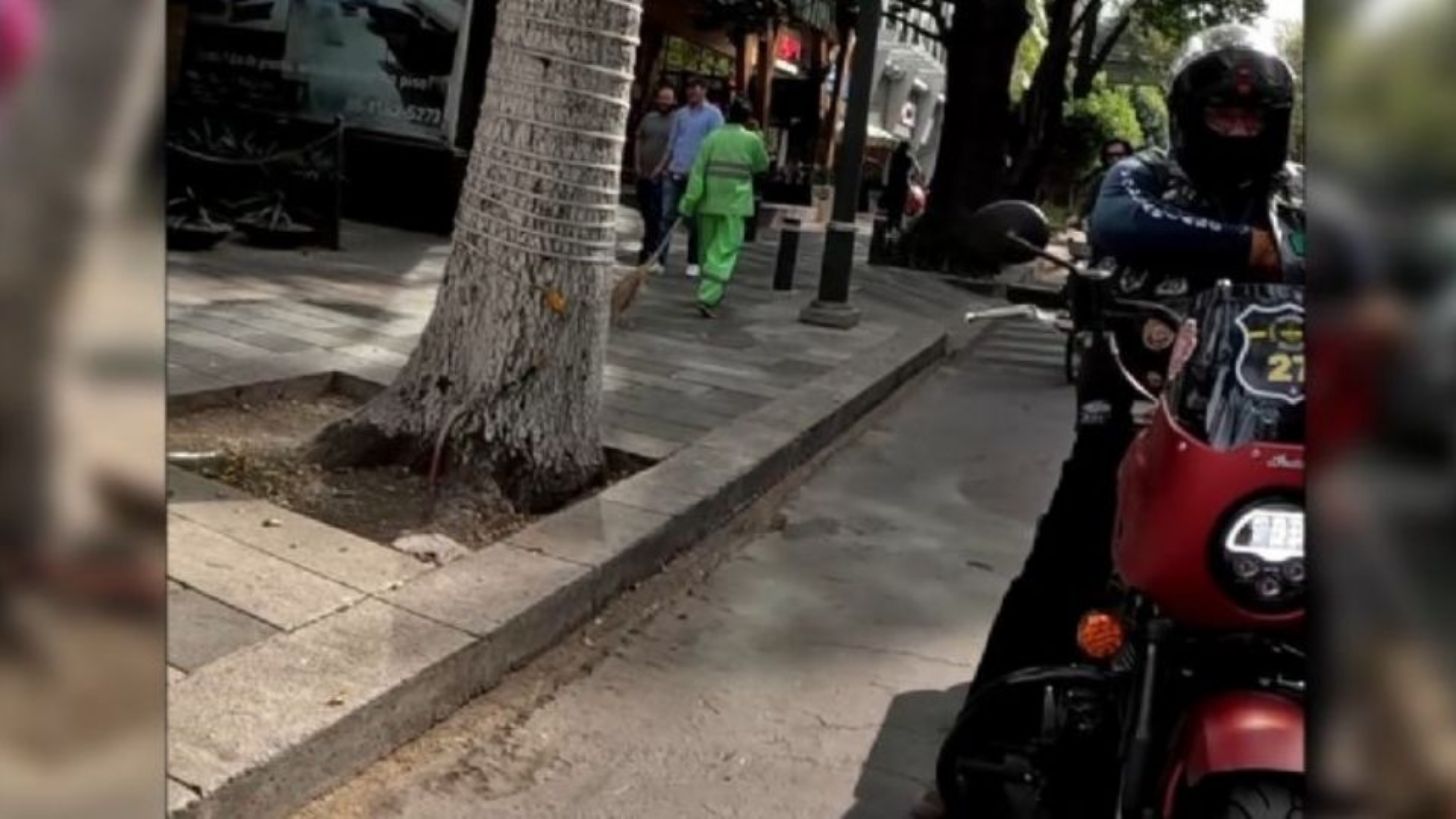 El usuario se la bici avanzó unos metros para dejar que el personal de limpia realizará su trabajo, lo cual fue tomado como el conductor de la moto como una señal de que podría seguir avanzando por el carril confinado. "Para que se te quite", la frase después de la agresión. Al notar que no resulto efecto, decidió avanzar con la moto y golpearlo con la llanta trasera, posteriormente se incorporó al carril correspondiente.