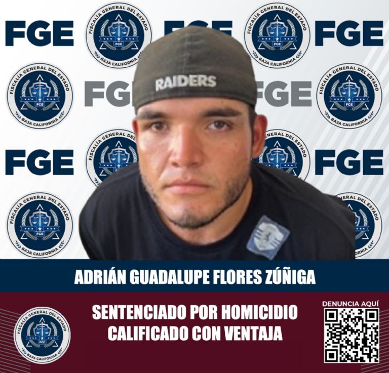 Tijuana, Baja California.- La Fiscalía General del Estado de Baja California comunicó este domingo que fue dictada una condena contra un hombre llamado Adrián Guadalupe Flores Zúñiga, por cometer el delito de homicidio calificado. El sentenciado pasará 20 años en prisión por el crimen ocurrido el 17 de agosto de 2023, al interior de un establecimiento de tatuajes, ubicado en la colonia Dávila, delegación Zona Centro, de la ciudad de Tijuana.