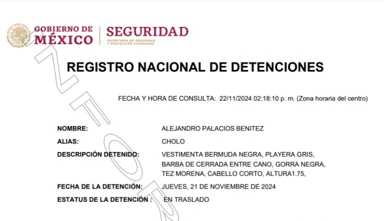 El arresto tuvo lugar en el municipio de Tlatlaya, Estado de México. Según explicaron las autoridades, después de tener conocimiento que 'El Cholo Palacios' se resguardaba en esta zona, los oficiales dieron inicio a acciones de seguimiento y vigilancia en el sitio. Enseguida, comenzaron el operativo en la avenida Independencia de la localidad El Naranjo, donde se cumplimentó una orden judicial por los delitos de delincuencia organizada y desaparición forzada.