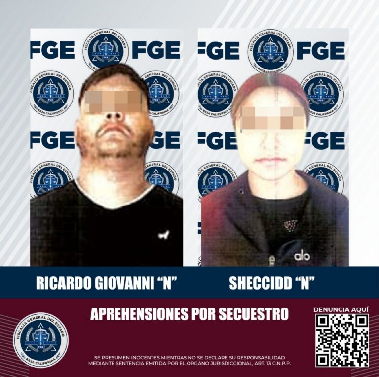 Tijuana Baja California.- Elementos de la Fiscalía General del Estado de Baja California logaron la detención de Sheccid 'N' y Ricardo Giovanni 'N', quienes contaban con una orden de aprehensión activa por el delito de secuestro agravado en el Estado de México. La colaboración entre ambas instituciones permitió la localización de los dos individuos buscados por la justicia, esto sucedió el 26 de noviembre de 2024, en la ciudad de Tijuana.