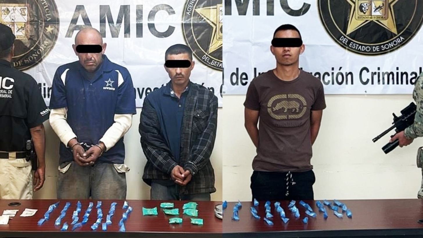 San Luis Río Colorado, Sonora.- Durante un operativo de seguridad realizado en la ciudad de San Luis Río Colorado, Sonora, elementos de la Agencia Ministerial de Investigación Criminal (AMIC), Secretaría de la Defensa Nacional (Defensa), Guardia Nacional (GN) y Secretaría de Marina (Semar), lograron la captura de tres individuos, presuntos miembros de una banda criminal y el aseguramiento de sustancias ilegales.