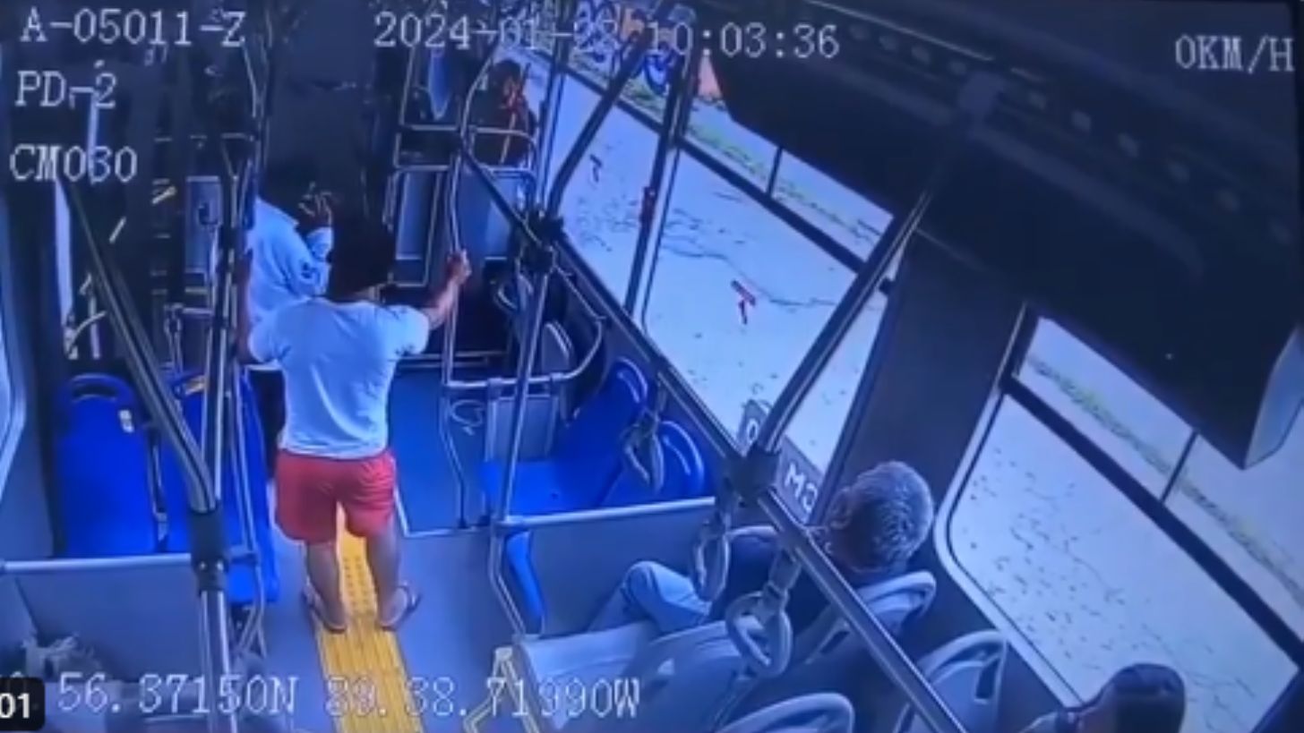 En la misma sección se hallaba el presunto agresor de la fémina. En un rápido movimiento lanzó al chofer hacia las escaleras. Debido al empujón, él perdió el equilibrio y cayó fuera del transporte, ya que la puerta estaba abierta. Luego de presenciar la caída, personas cercanas al hecho rodearon al conductor para intentar ayudarlo. De inmediato se percataron de que no estaba consciente y no respondía, por lo que solicitaron la presencia de los paramédicos.