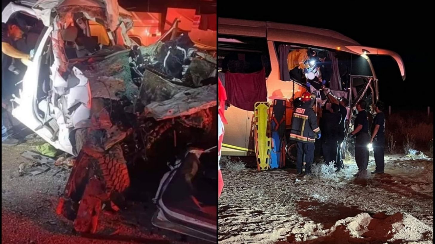San Luis Río Colorado, Sonora.- Durante la madrugada de este sábado, 1 de junio, se registró un terrible accidente en la carretera federal que recorre desde San Luis Río Colorado hasta el municipio de Sonoyta, en el estado de Sonora. De acuerdo con algunas imágenes de los hechos, se puede apreciar que, en el incidente estuvieron involucrados un autobús de pasajeros y un vehículo color blanco que parece ser particular.