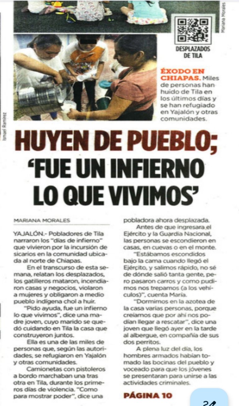 Tila, Chiapas.- La violencia que hemos visto en los últimos días en Tila, Chiapas, ha rebasado los límites, alcanzado dimensiones alarmantes. En redes sociales abundan las publicaciones que exhiben el terror en el que viven sumidos los habitantes de esta zona controlada por la delincuencia, la cual exige montos de 50 mil pesos a cada familia como 'cobro de piso', le prende fuego a vehículos, viviendas y comercios, inicia balaceras y ejerce abusos sexuales.