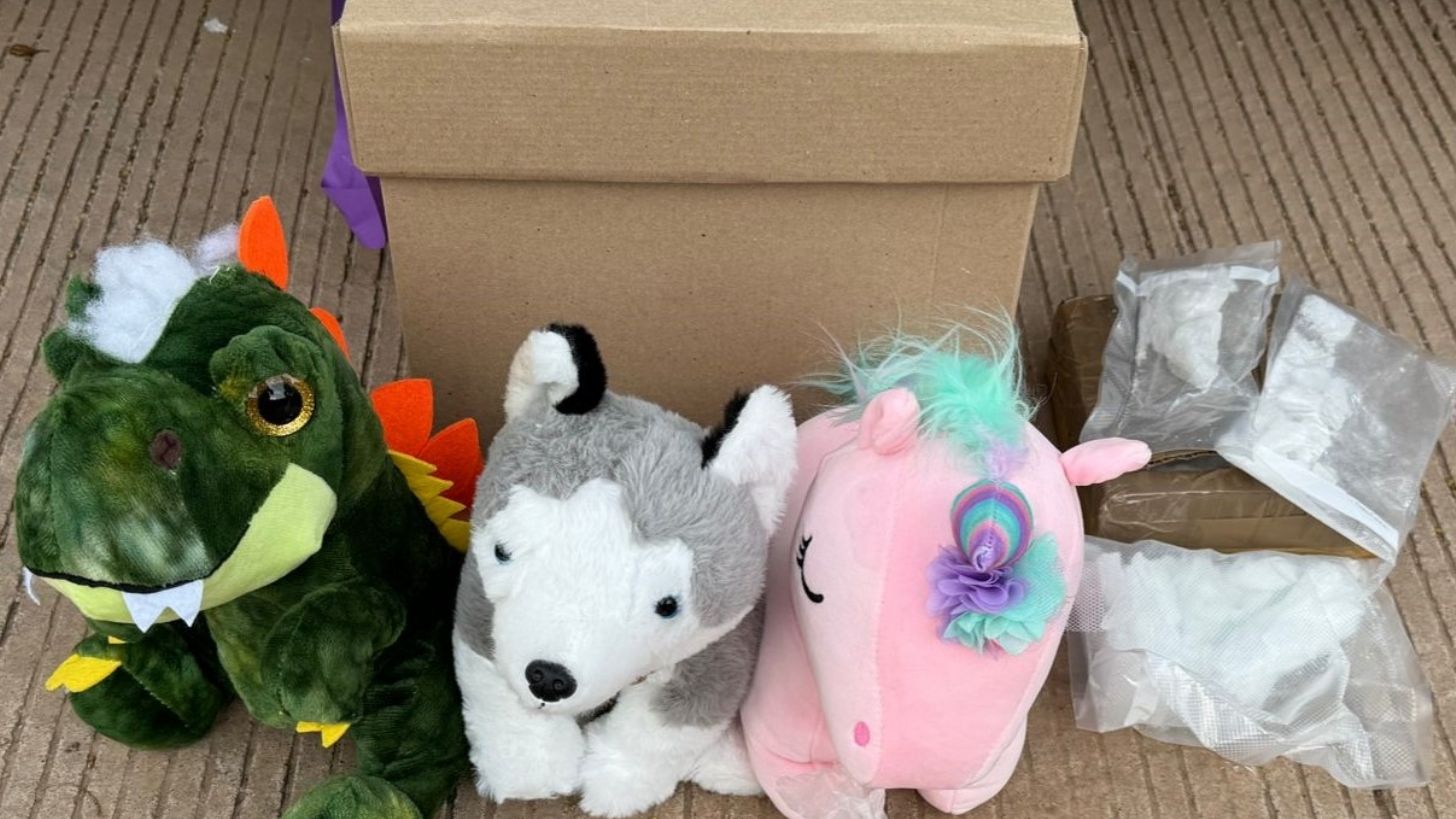 Culiacán, Sinaloa.- Elementos de la Guardia Nacional lograron asegurar droga sintética que estaba oculta al interior de peluches, el material fue detectado en una empresa de mensajería ubicada en el municipio de Culiacán, Sinaloa. Fueron los propios integrantes de la corporación de Seguridad quienes aseguraron bolsas con cocaína y droga sintética tipo crystal al interior de figuras de peluche. Las autoridades ya iniciaron con las investigaciones.