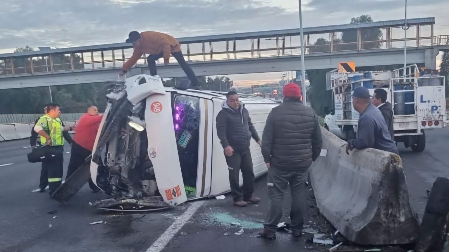 De acuerdo con la información preliminar proporcionada por las autoridades del Estado de México, el conductor de esta camioneta de transporte público circulaba a exceso de velocidad, razón por la cual perdió el control y se impactó en contra del muro de contención de la autopista México-Pachuca. En redes sociales se pueden observar los resultados de este hecho. La camioneta quedó tendida sobre su costado izquierdo a un lado de la vialidad.