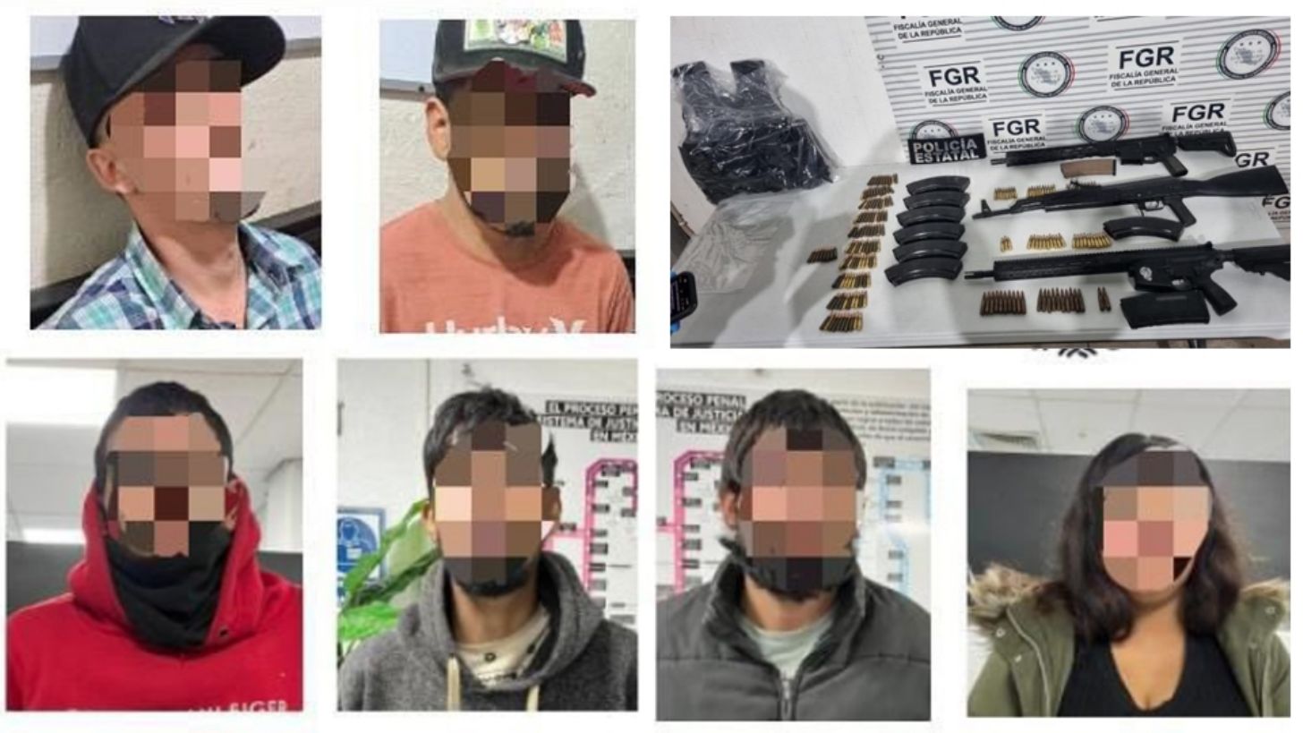 A estos individuos les encontraron tres armas de fuego tipo fusil, ocho cargadores para arma de fuego tipo fusil, 187 cartuchos de uso militar, un vehículo marca Ford blanco. Asimismo, en Santa Ana agentes de la Policía Estatal detuvieron a Marcos Alejandro 'N', Pablo Ramon 'N', Fernando Alberto 'N' y Siria Alexa 'N' por la portación de arma de fuego, quedando asegurado un arma de fuego tipo fusil; un cargador; 28 cartuchos y un vehículo marca Acura.